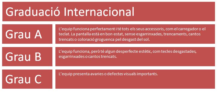 Els equips de grau B i C també poden vendre a empreses especialitzades que els reparen i reacondicionan, encara que el seu valor es veurà reduït. Els portàtils i les pantalles són més difícils de vendre quan tenen desperfectes estètics, però altres equips com la torre d’un ordinador de sobretaula sí que poden vendre encara que tinguin esgarrapades, ja que solen amagar-se sota la taula i no suposa un problema per a molts clients.