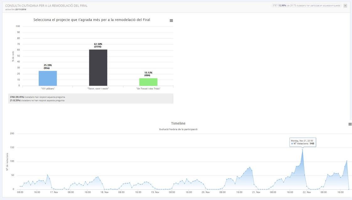 La primera consulta online organitzada pel consistori fou per conèixer la percepció ciutadana sobre els correbous i sobre la prioritat de la variant al municipi.