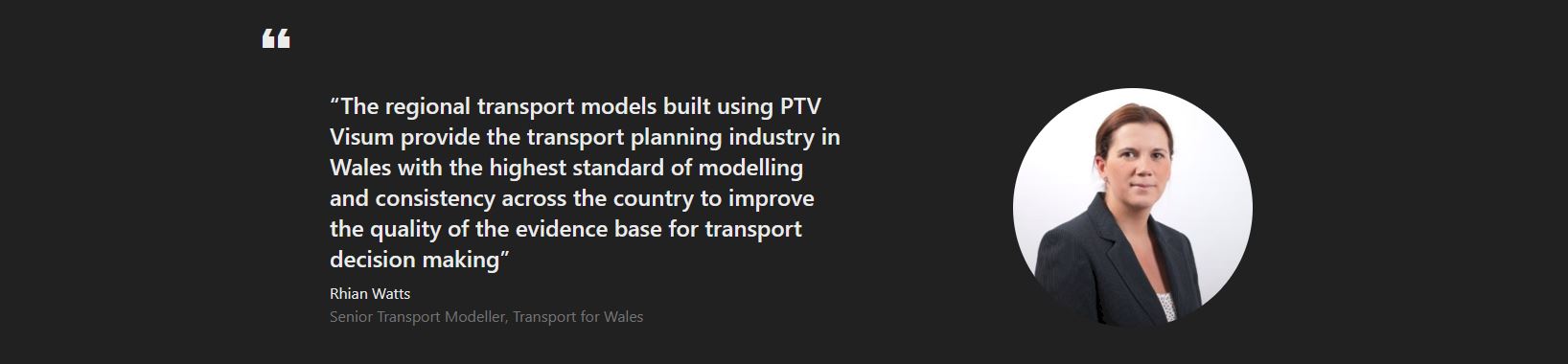 Segons Rhian Watts, Senior Transport Modeller de Transport for Wales, “els models de transport regional construïts amb PTV Visum proporcionen a la indústria de planificació del transport a Gal·les el més alt estàndard de modelització i coherència a tot el país per millorar la qualitat de la base d’evidències per a la presa de decisions de transport”.