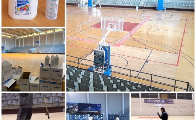 Intervenció/Detalls: Renovació i protecció de paviments esportius de fusta al Poliesportiu Municipal Francisco Laporta d’Alcoi
