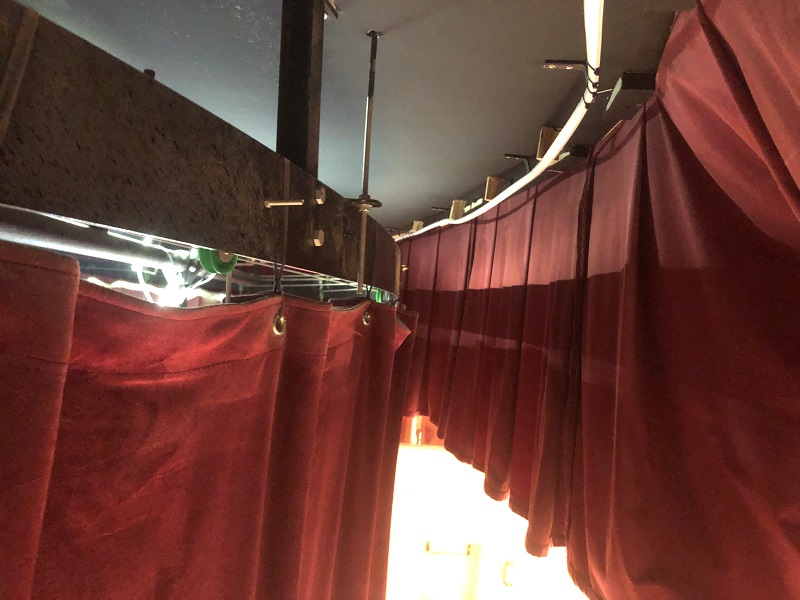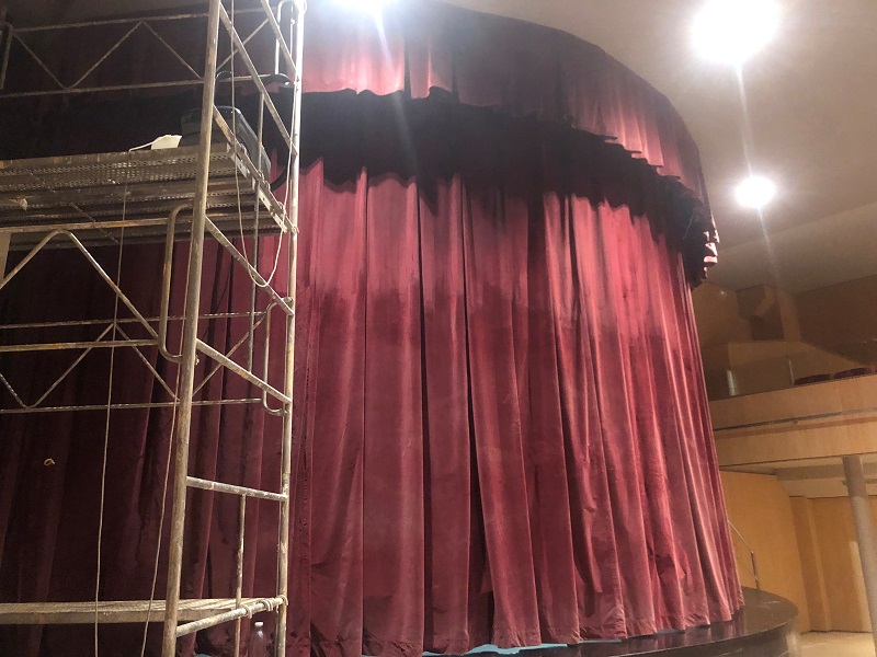 Dins del programa de manteniment del teatre Angel Guimerà de Santa Eugènia de Berga, un cop acabats els treballs de manteniment s’ha plantejat rentar i ignifugar l’espectacular cortina de teló de boca de l’escenari.