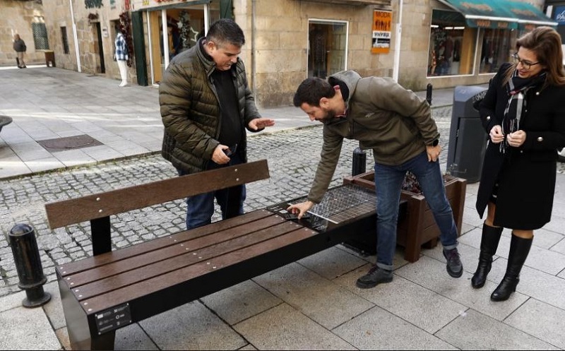 Cambados, per exemple, compta des de fa un any amb tres bancs intel·ligents que a través d’un panell solar permeten carregar els mòbils mitjançant connexió USB o sense fil.