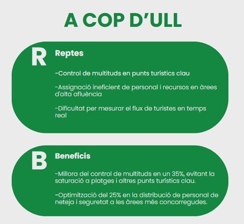 -Control de multituds en punts turístics clau: Durant les temporades altes, les destinacions més populars se saturen de visitants, cosa que pot generar aglomeracions i problemes de seguretat, a més d’impactar negativament a l’experiència turística.