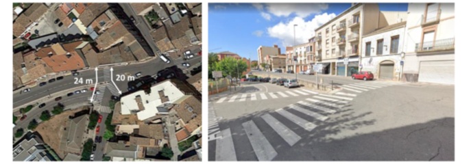 El principal repte identificat en l’estudi de trànsit per a Cervera era la configuració ineficient i congestionada de la intersecció que connecta quatre vies principals de la ciutat. Aquest encreuament, regulat per semàfors i caracteritzat per un patró complex de carrers d’entrada i sortida, es va identificar com un coll d’ampolla, especialment perquè un dels carrers principals actua com un dels pocs connectors vitals a través de la línia de ferrocarril del municipi. Aquesta posició estratègica provocava un elevat volum de trànsit per un espai no dissenyat per assumir tals quantitats, generant retards severs, llargues cues i problemes de seguretat, sobretot en hores punta.