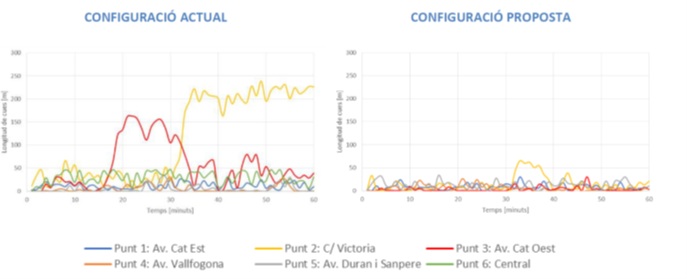 L’estudi va generar resultats contundents que donaven suport clar al redisseny proposat de la intersecció de Cervera. La proposta millora l’eficiència, s’adapta a la demanda creixent i prioritza la seguretat dels vianants, tot amb un enfocament equilibrat i resilient de gestió del trànsit urbà. L’anàlisi es basa en dos escenaris modelitzats: l’actual i una previsió a deu anys vista.