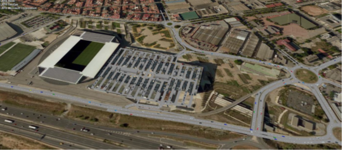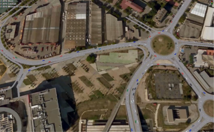 El programari PTV VISSIM és un programari de microsimulació, que permet caracteritzar el trànsit de manera discreta (vehicle per vehicle) i facilita l’anàlisi del comportament del trànsit a les interseccions, en els encreuaments, les rotondes i altres infraestructures viàries per identificar mancances i escenaris de millora. Fins on sabem, aquests models no s’han utilitzat per al disseny i millora d’entorns urbans com el pàrquing d’aquest centre comercial.