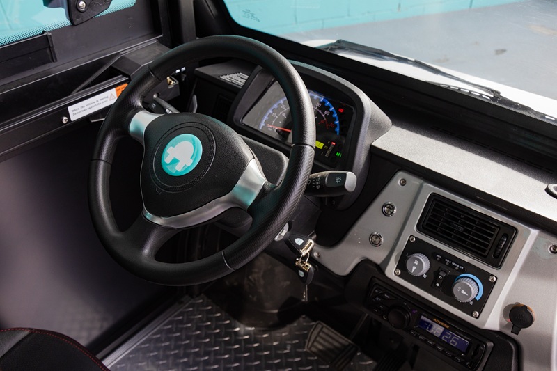 La cabina, còmoda i funcional, està equipada de sèrie amb aire condicionat i calefacció, garantint el confort dels operaris durant tot l’any, independentment de les condicions climàtiques. Aquest aspecte contribueix a millorar tant l’ergonomia com la productivitat en l’ús diari del vehicle.